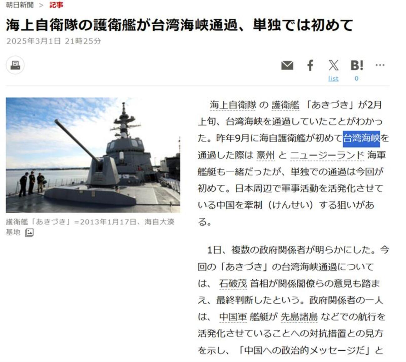 @mainichijpnews海自艦の台湾海峡通過 「恥辱の日」で中国反発 軍事行動活発化 mainichi.jp/20260420/k00/0…